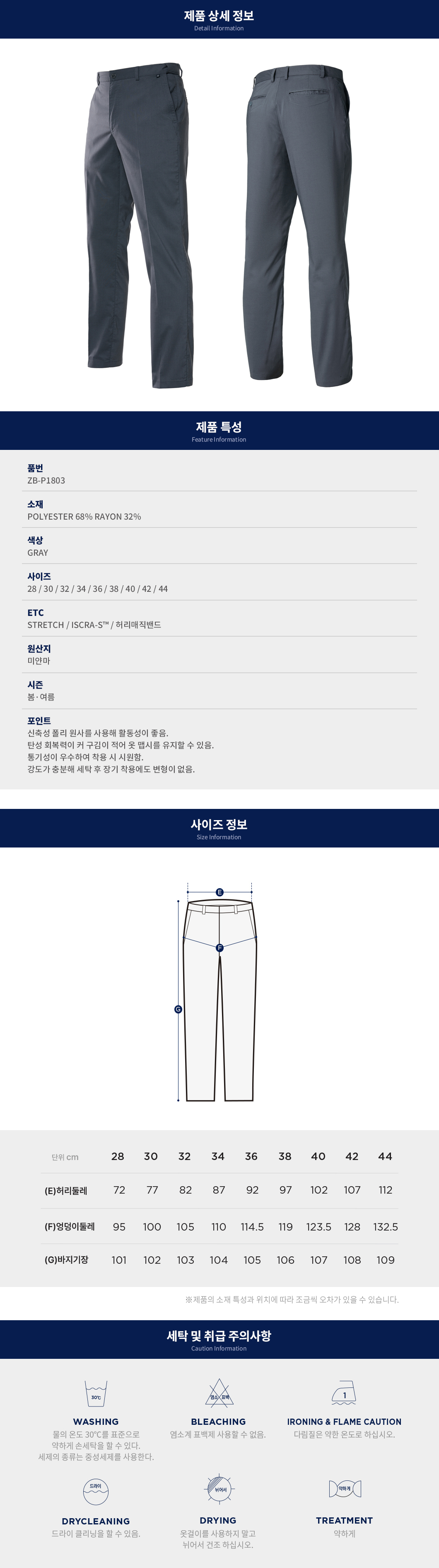 ZB-P1803 지벤 춘추 여름 그레이 허리밴드 신축성 통기성 작업복 하의 바지