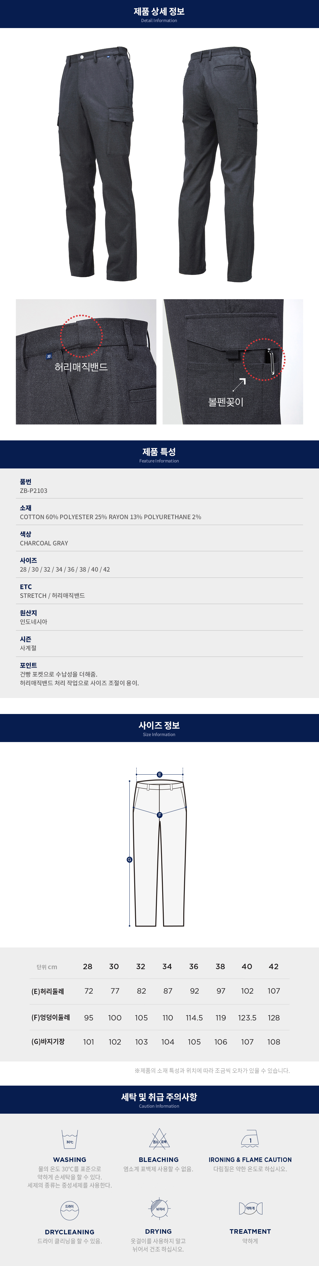 ZB-P2103 지벤 사계절 챠콜그레이 데님 허리밴딩 작업복 하의 바지