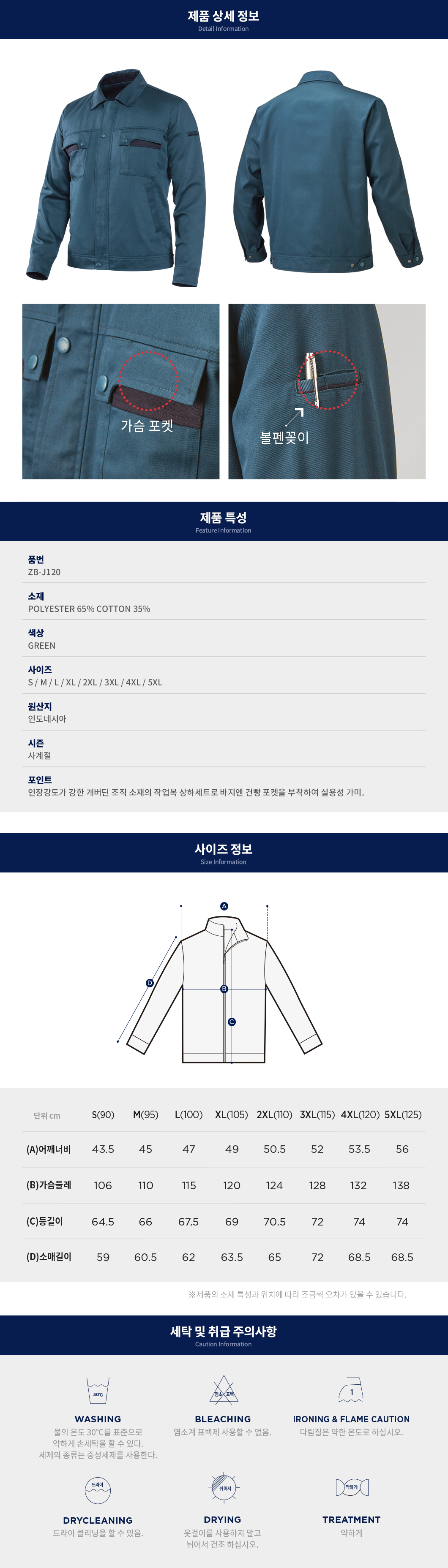 ZB-J120 지벤 사계절 그린 작업복 상의 점퍼