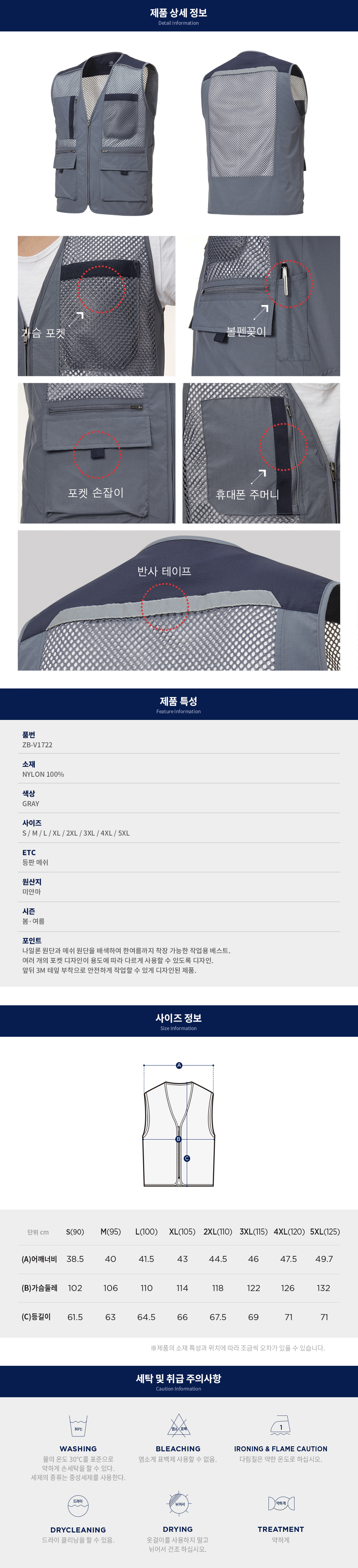 ZB-V1722 지벤 춘하 그레이 메쉬 망사 조끼