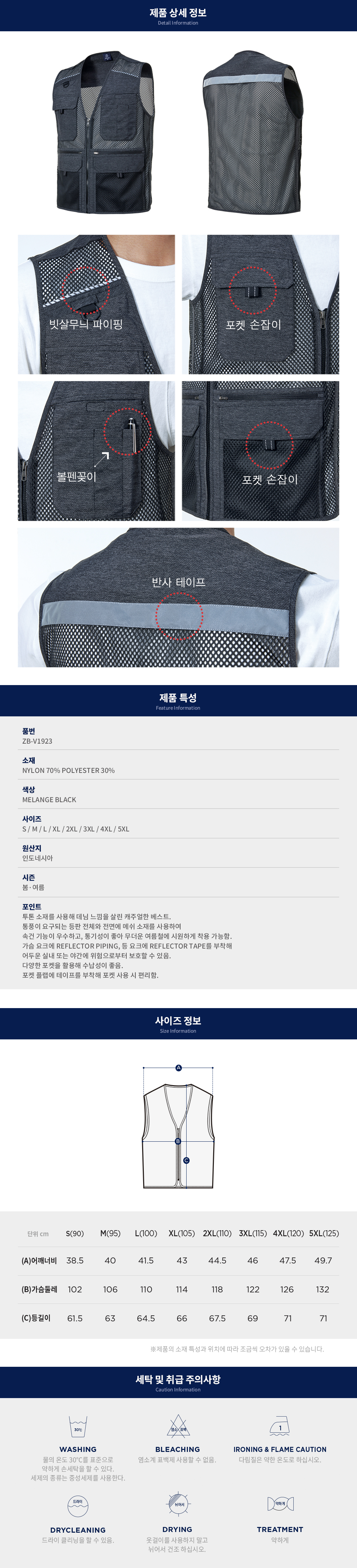 ZB-V1923 지벤 봄 여름 멜란지블랙 데님스타일 캐쥬얼 망사 메쉬 조끼