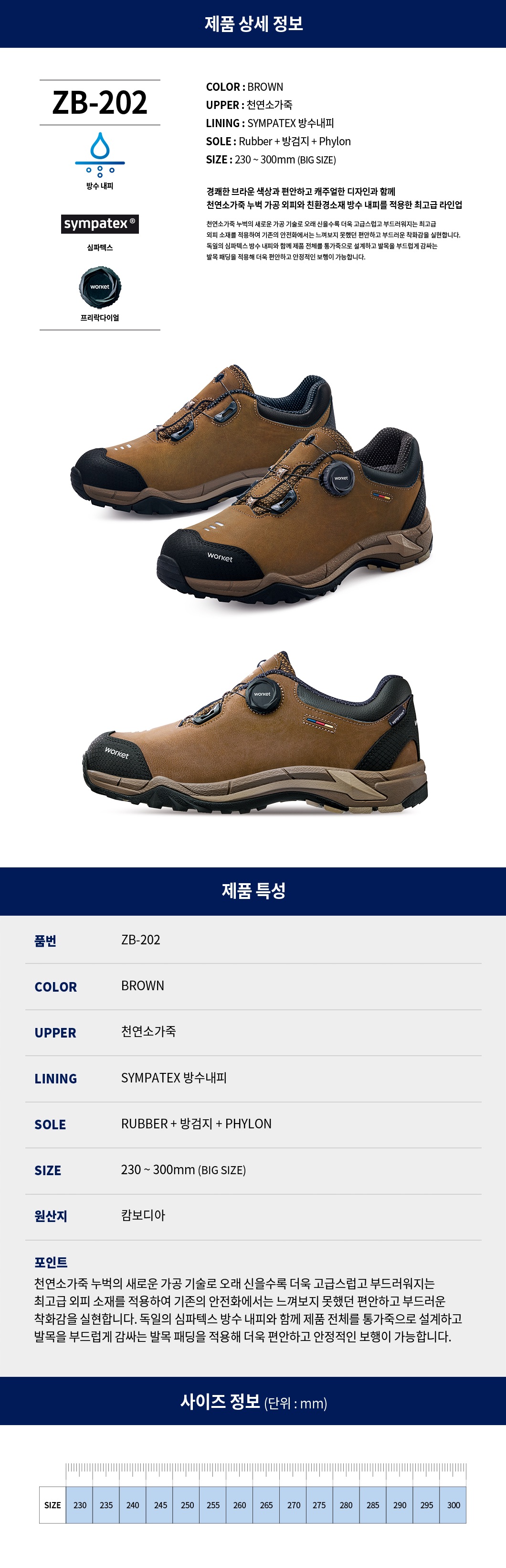 독일의 심파텍스 방수 내피와 함께 제품 전체를 통가죽으로 설계하고 발목을 부드럽게 감싸는 발목 패딩을 적용해 더욱 편안하고 안정적인 보행이 가능합니다.
